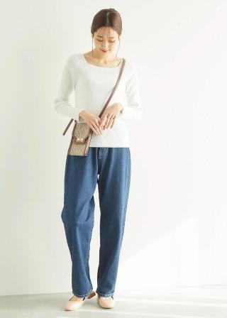 ・フィット感のあるリブ編みと、すっきりと開くスクエアネックで大人らしい仕上がり。