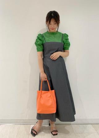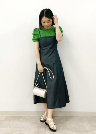 スクエアネックのインナー合わせだと印象がスッキリするのでオススメです。