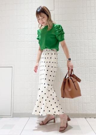 おすすめのコーデ:スカートやボトムどちらにも合わせやすいですが、マーメイドスカートなどと合わせてガーリーな着こなしがおすすめです。