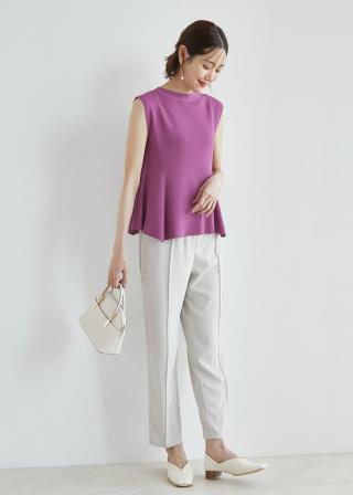 ・肩幅を持たせた、露出控えめのノースリーブデザイン。