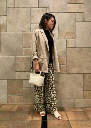 ・テーパードパンツに合わせてきれいめな着こなしに。