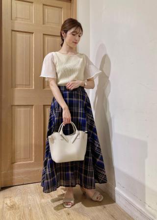 ・柄物スカートできちんと感のあるお出かけスタイルに。