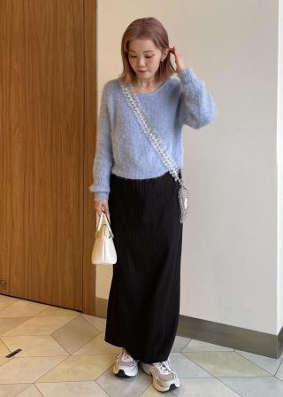 ・毛足のあるシャギーニットプルオーバー。