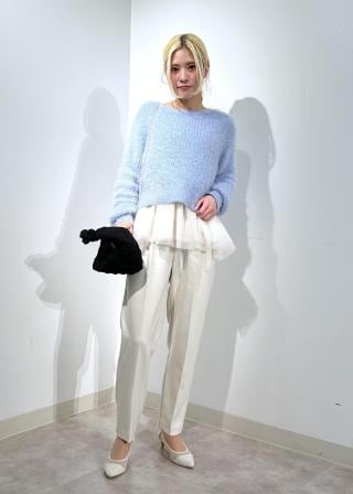 ・毛足のあるシャギーニットプルオーバー。