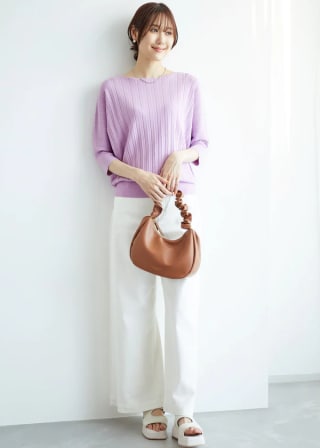 ・プリーツデザインで表情をつけた、ドルマンスリーブニット。