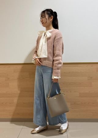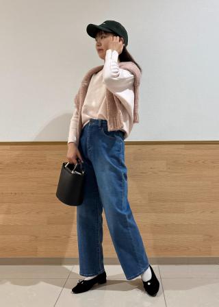 ・ライトブルーのジーンズやホワイトカラーのボトム合わせで、冬も明るく軽やかな着こなしに。