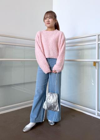 スパンコール混リボンヤーンニットプルオーバー