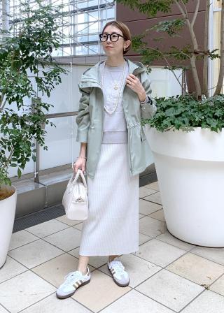 長すぎない丈感と裾がリブ素材なので、スカートスタイルにもバランスよくスタイリングできます。