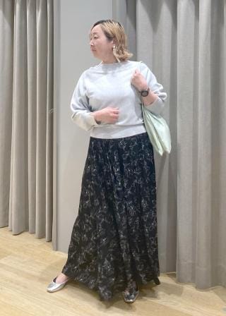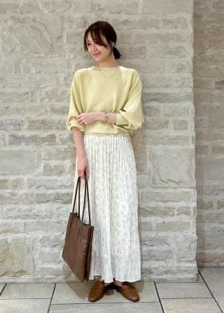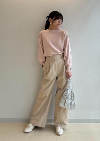 裾が広めのリブ素材ですっきりしている為、フレアスカートやワイドパンツにもバランスよく着用できます。