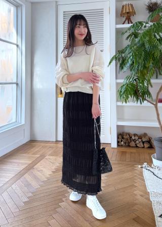 シンプルなデザインですが、合わせるボトム次第で可愛くもなり、大人っぽくもなります。