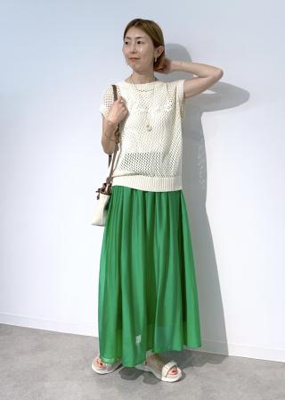 ニットの下に合わせるものにより、色々と着回しができそうです。
