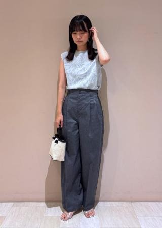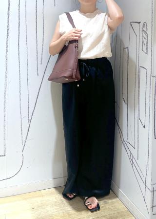 ・甘いアイテムなので、ワイドパンツなどでクールに着るのが一押し。