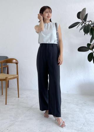 ・甘いアイテムなので、ワイドパンツなどでクールに着るのが一押し。