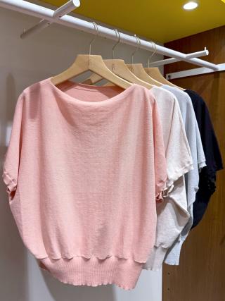 ・からだを包み込む、モモンガシルエットの半袖ニットプルオーバー。