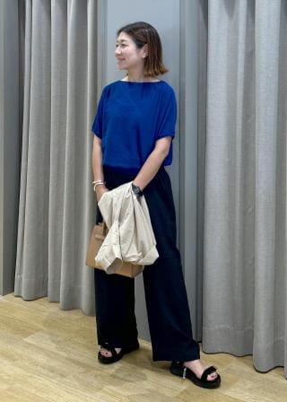 ・裾リブですっきりするので、ワイドパンツやフレアスカートもバランス良くマッチ。