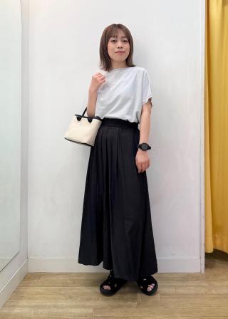 ・裾リブですっきりするので、ワイドパンツやフレアスカートもバランス良くマッチ。