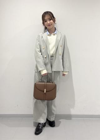 ダブルカラーが異素材なので顔周りの印象もメリハリが着きます。
