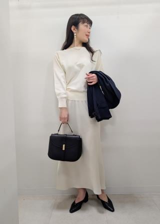 ・ワイドパンツやボリュームスカートと合わせた、抜け感のあるリラックススタイルがおすすめ。