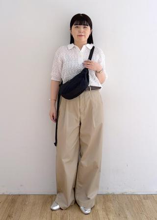 ・きれいめスラックスやタイトスカートにタックインして、清潔感のある上品なオフィスカジュアルに。