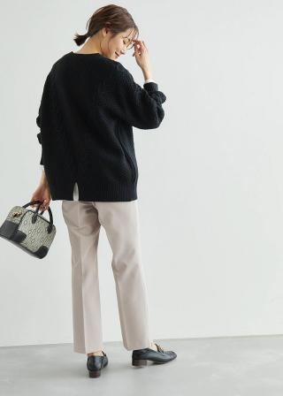 ・フロントはY字に、バックはV字に施されたケーブル編みがポイント。