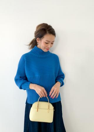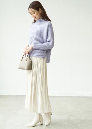 ・ワイドシルエットが今年らしい、タートルネックのリブニットプルオーバー。