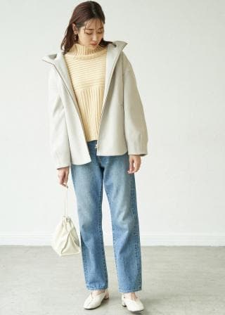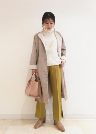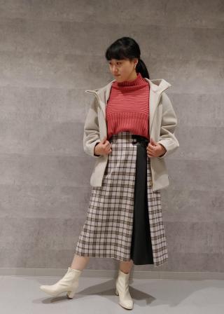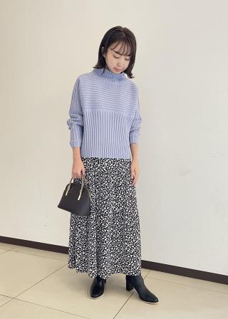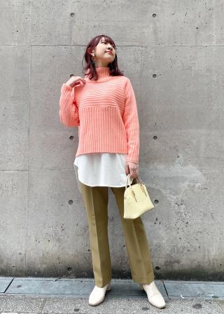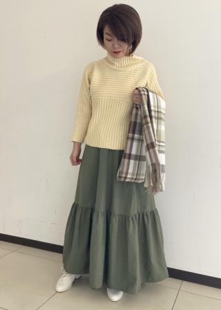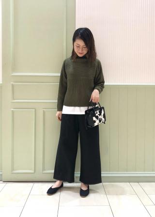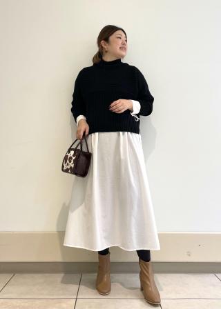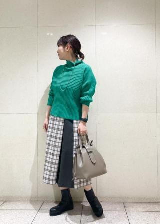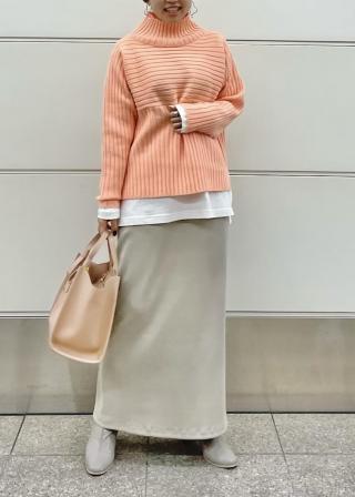 しかし色味と着心地がよいので、細身のパンツスカートと合わせたい。