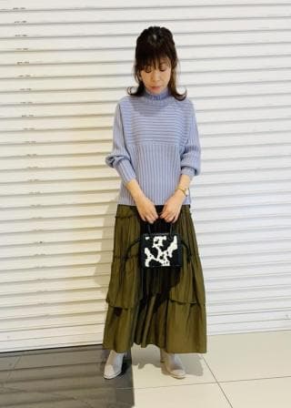 しかし色味と着心地がよいので、細身のパンツスカートと合わせたい。