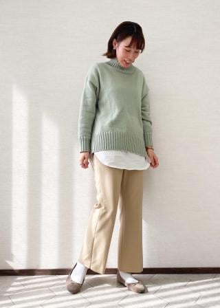 ロングスカートや細身のパンツに合わせています。ハイネックで暖かいです。