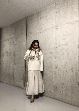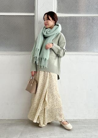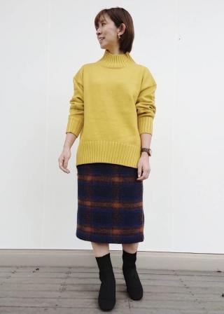 ロングスカートや細身のパンツに合わせています。ハイネックで暖かいです。
