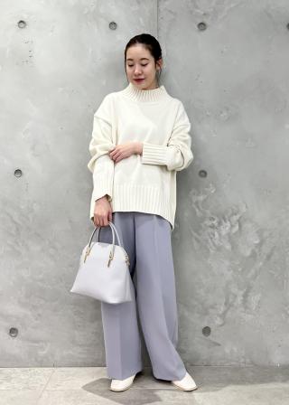 ・体を包み込むゆったりとしたシルエットがモダンなハイネックニット。