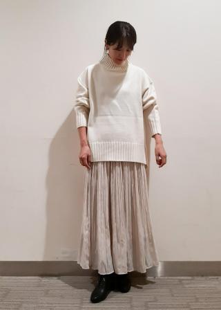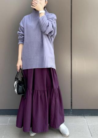 ロングスカートや細身のパンツに合わせています。ハイネックで暖かいです。