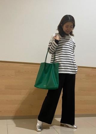 ・シンプルなテーパードパンツに合わせるとモードな着こなしが完成。