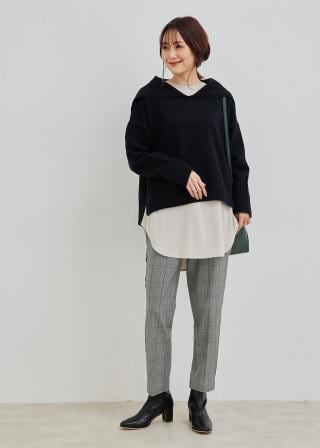 ニット自体が柔らかいのでインしやすかったです。首元も抜け感がありスッキリ見えます。