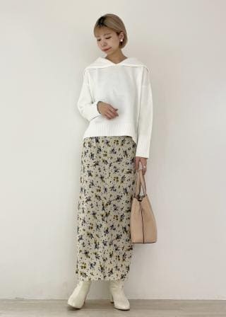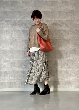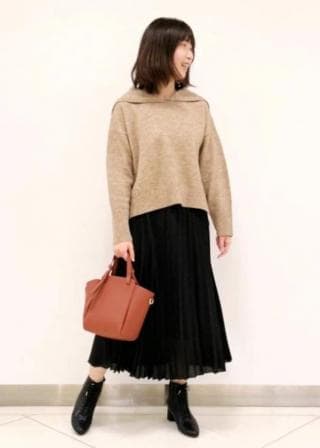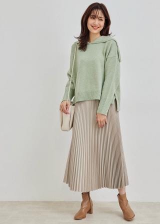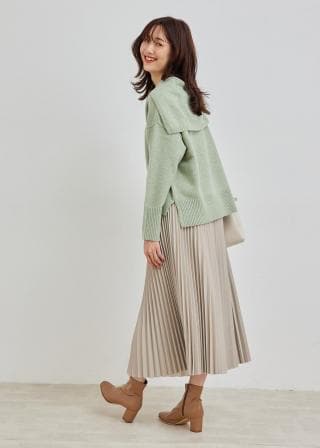 ・プリーツスカートに合わせるとエレガントな着こなしに。
