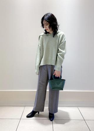 ・プリーツスカートに合わせるとエレガントな着こなしに。