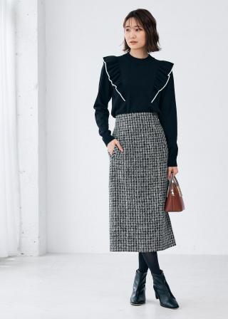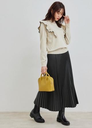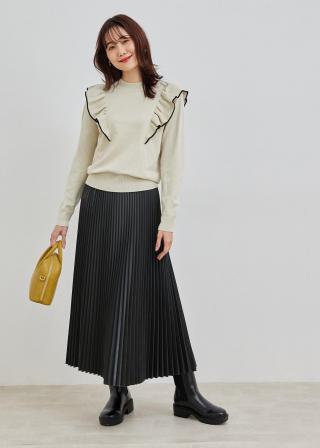 ・ビブ切り替えにフリルをあしらった、スウィートモードなニット。