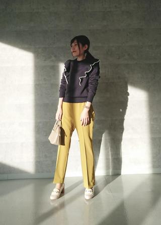 ・きれいめなテーパードパンツに合わせてお出かけスタイルに。