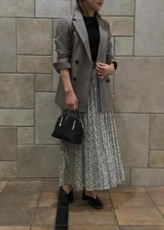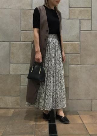 ・フェミニンなフラワープリントスカートを合わせてお出かけ仕様に。
