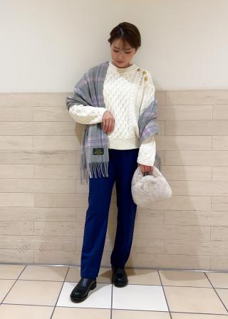 ・チェック柄のワイドパンツやプリーツスカートなどを合わせて、トラッドなスタイルにチャレンジ。