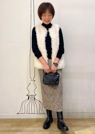 ・ロングスカートに合わせて旬のバランス感に。
