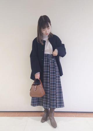 ・ロングスカートに合わせて旬のバランス感に。