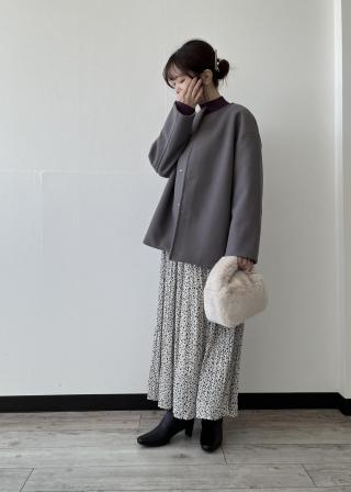 ・ロングスカートに合わせて旬のバランス感に。