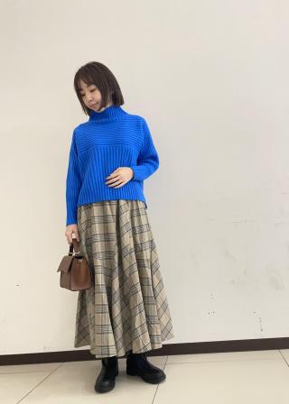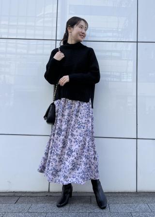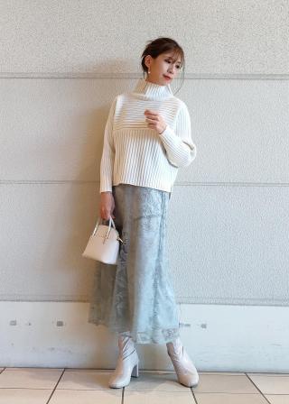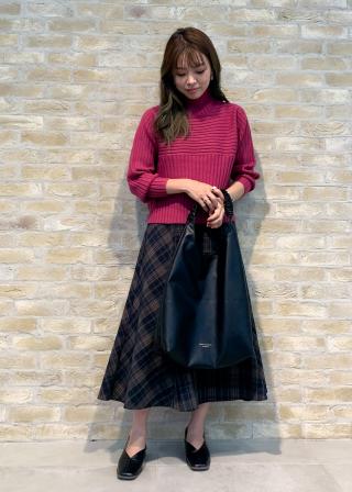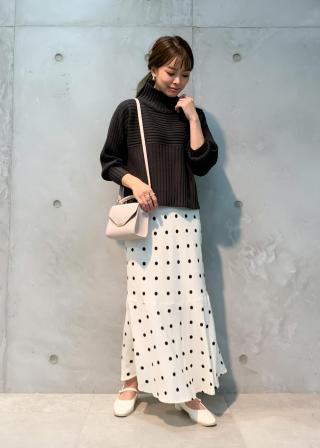 ・ゆったりシルエットと、抜け感のあるハイネックがポイント。