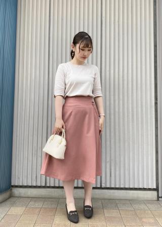 ・スウィートなフレアスカートに合わせてクラシックなスタイルが完成。