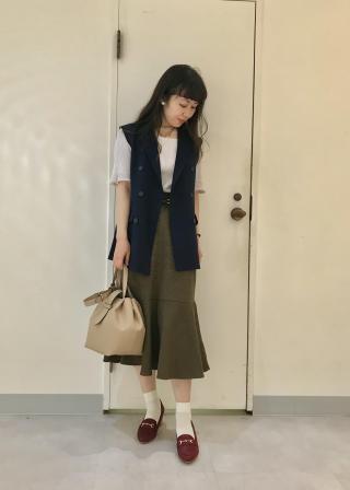 ・シンプルで合わせやすく、存在感のある柄物スカートとベストマッチ。