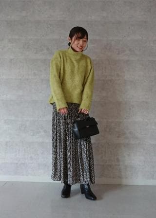 ・軽やかなプリントスカートに合わせると女性らしく決まる。