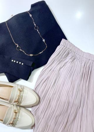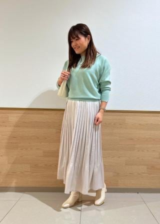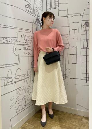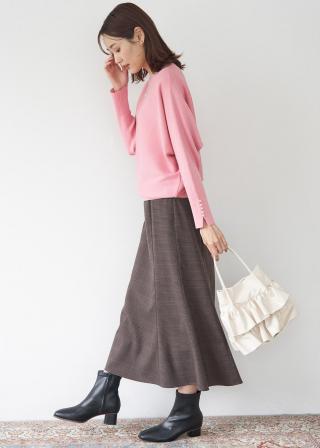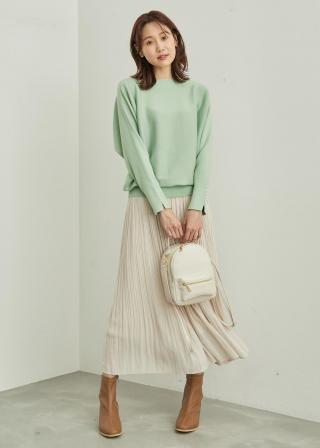・裾リブで引き締まるので、ワイドパンツやフレアスカートも好相性。