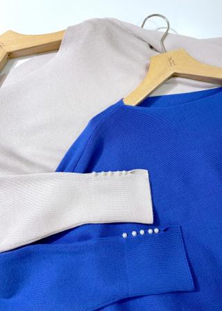 【新色追加】【WEB限カラー:グレー】マシュマロニット袖パールドルマンニット