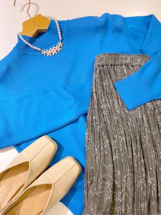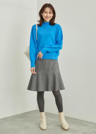 おすすめコーデ:厚手すぎない生地感とシンプルなデザインのニットなので、オーバーサイズのカーディガンやジャンパースカートのインナーとしても活躍してくれます。