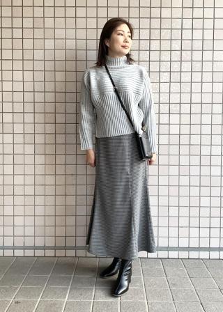【累計40万枚突破】スタイルアップが叶うクロップドリブ切り替えニット/パチパチしにくい・洗濯機OK